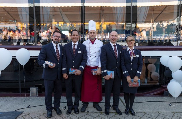 Die Kadercrew der Excellence Countess. Weiterer Text über ots und www.presseportal.ch/de/nr/100018141 / Die Verwendung dieses Bildes ist für redaktionelle Zwecke honorarfrei. Veröffentlichung bitte unter Quellenangabe: "obs/Reisebüro Mittelthurgau Fluss- und Kreuzfahrten/Frank Schwarzbach"
