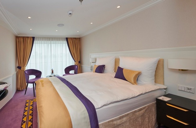 Excellence Countess Oberdeck Kabine. Weiterer Text über ots und www.presseportal.ch/de/nr/100018141 / Die Verwendung dieses Bildes ist für redaktionelle Zwecke honorarfrei. Veröffentlichung bitte unter Quellenangabe: "obs/Reisebüro Mittelthurgau Fluss- und Kreuzfahrten"