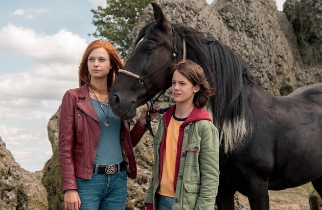 OSTWIND - DER GROSSE ORKAN / ©2019 Constantin Film Verleih GmbH/Sam Film GmbH/Bernd Spauke / Regie: Lea Schmidbauer / Mika (Hanna Binke) und Ari (Luna Paiano) mit Ostwind / Erste Bilder und Teasertrailer online. Weiterer Text über ots und www.presseportal.de/nr/12946 / Die Verwendung dieses Bildes ist für redaktionelle Zwecke honorarfrei. Veröffentlichung bitte unter Quellenangabe: "obs/Constantin Film/Bernd Spauke"