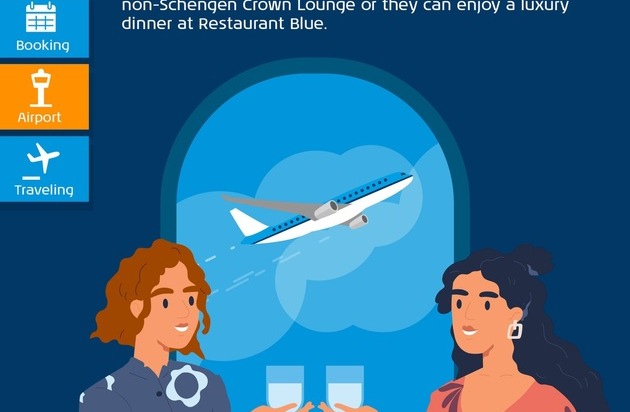 Zahlreiche Innovationen werden den Aufenthalt auf dem Flughafen noch angenehmer gestalten. Für Transferreisende stehen in der neuen KLM Crown Lounge für Nicht-Schengen-Gebiete am Flughafen Amsterdam Schiphol Schlafkapseln bereit. Kulinarisch können sich Transferreisende mit einem luxuriösen Abendessen im Restaurant Blue verwöhnen lassen, für die genussvollen Menüs ist der Michelin-Sternkoch Joris Bijdendijk zuständig.
