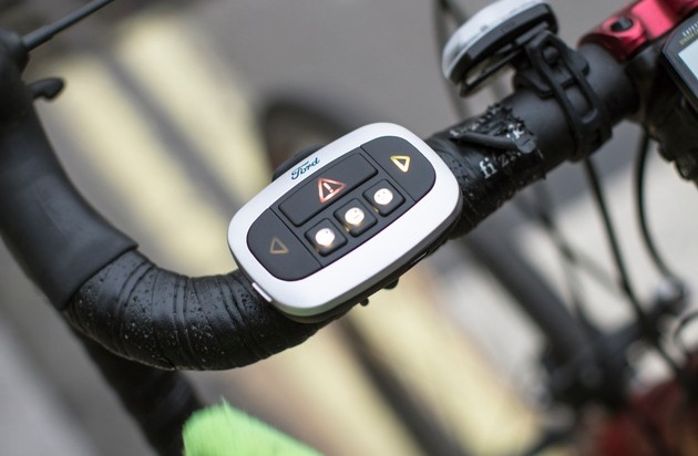 Der Radfahrer aktiviert das jeweilige Emoji, die Richtungspfeile und das Gefahrenzeichen mittels einer drahtlosen Fernbedienung, die am Lenker des Fahrrads montiert ist. Weiterer Text über ots und www.presseportal.ch/de/nr/100000451 / Die Verwendung dieses Bildes ist für redaktionelle Zwecke honorarfrei. Veröffentlichung bitte unter Quellenangabe: "obs/Ford Motor Company Switzerland SA"