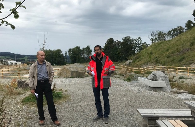 Stefan Frei, Gemeindepräsident Jonschwil (links) und Stefan Nagel, Verantwortlicher Rohstoffsicherung Nordostschweiz bei Holcim