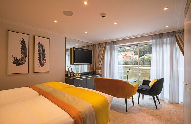 Mittel-/Oberdeck-Kabine Excellence Empress / Weiterer Text über ots und www.presseportal.ch/de/nr/100018141 / Die Verwendung dieses Bildes ist für redaktionelle Zwecke honorarfrei. Veröffentlichung bitte unter Quellenangabe: "obs/Reisebüro Mittelthurgau Fluss- und Kreuzfahrten"