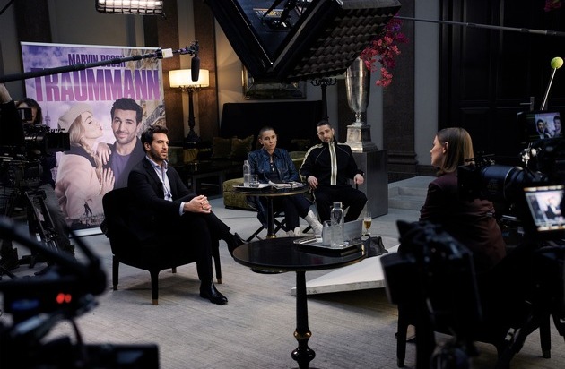 LIEBESDINGS: Marvin (Elyas M'Barek) im Interview mit Boulevardjournalistin Bettina Bamberger (Alexandra Maria Lara). Seinen Freunden Sammy (Peri Baumeister) und Hakan (Denis Moschitto) schwant Übles. / Weiterer Text über ots und www.presseportal.de/nr/12946 / Die Verwendung dieses Bildes ist für redaktionelle Zwecke unter Beachtung ggf. genannter Nutzungsbedingungen honorarfrei. Veröffentlichung bitte mit Bildrechte-Hinweis.