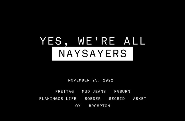 Weil zusammen «Nein» zu sagen nicht nur mehr Spass macht, sondern überdies lauter ist und besser gehört wird, hat sich FREITAG auch dieses Jahr wieder mit weiteren gleichgesinnten Brands zusammengetan, um gemeinsam ein lautes, positives Zeichen für sinnvollen Konsum und gegen Verschwendung zu setzen.