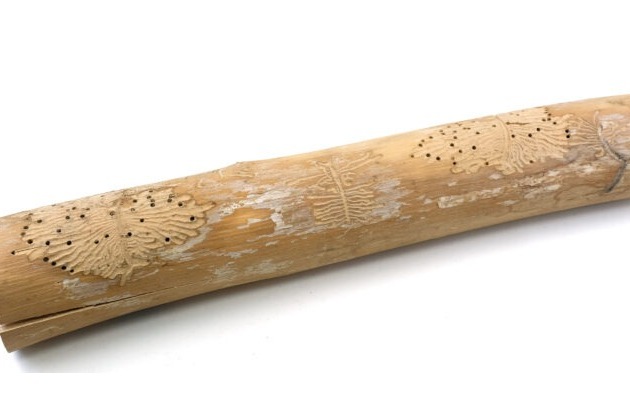 Die ästhetische Holzmuster gibt Preis, wer hier gefressen und Eier gelegt hat. Bild: Silvan Thüring, Naturmuseum Solothurn