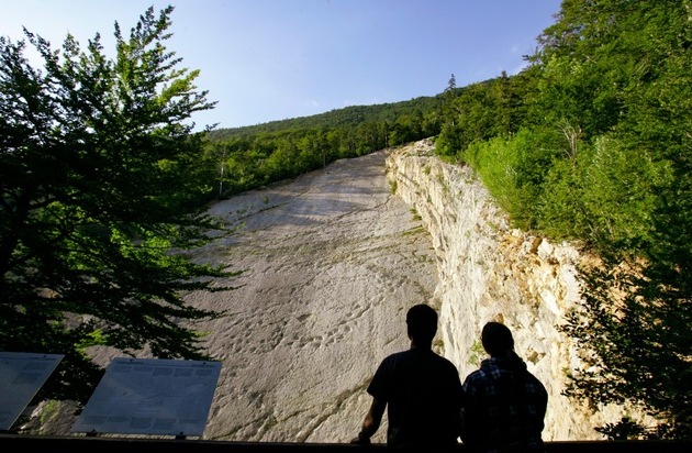 Am Sonntag, den 26. Mai 2024, um 16.00 Uhr, begibt man sich bei einer (Familien-) Exkursion auf die Spuren der Dinosaurier. Geologinnen und Geologen aus der Region erläutern, warum genau hier faszinierende Dinosaurierspuren zu bewundern sind und beim gemütlichen gemeinsamen "Bräteln" wird den Blick auf die Fährtenfläche genossen.