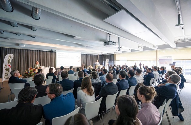 Gute Stimmung dank positiver Tourismuszahlen an der Generalversammlung von Graubünden Ferien im Medienhaus von Somedia in Chur. © GRF