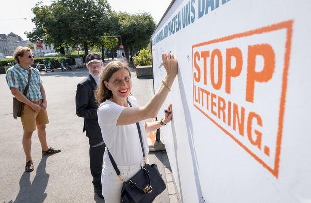 Littering stört, verursacht hohe Kosten und wirkt sich negativ auf das Image einer Stadt aus. Um die Zürcher Bevölkerung auf das Problem aufmerksam zu machen, haben sich an der heutigen IGSU-Bekenner-Aktion gegen Littering mehrere Zürcher Politikerinnen und Politiker am Bellevue versammelt: Nationalrätin Bettina Balmer, Kantonsrat Alexander Jäger, die Kantonsrätinnen Sylvie Matter und Monica Sanesi sowie die Gemeinderäte Roger Bartholdi, Michael Schmid und Anthony Goldstein haben gemeinsam mit den IGSU-Botschafter-Teams Passantinnen und Passanten dazu aufgefordert, sich auf einem weissen Plakat mit Unterschriften, Sprüchen oder Illustrationen gegen Littering zu bekennen. «Wir führen diesen Sommer verschiedene Aktionen in Zürich durch», erklärt Cédric Québatte, Teamleiter der IGSU-Botschafter-Teams. «Dabei erreichen wir ein sehr breites Spektrum an Menschen: Auch heute haben sich unter anderem Studierende, Touristen, Businessleute und Grosseltern mit ihren Enkeln an der Aktion beteiligt.» Bekenner-Aktionen wie diese werden vom Schweizer Kompetenzzentrum gegen Littering IGSU seit 2013 in Städten wie Basel, Luzern, Genf und Lugano durchgeführt. Unterstützt wird die Bekenner-Aktion von JTI (Japan Tobacco International). «Wenn sich lokale Persönlichkeiten auf der Strasse für eine saubere Umwelt engagieren, sorgt das nicht nur für Aufmerksamkeit, es unterstreicht auch die grosse Bedeutung des Themas», findet Andrea Hausmann, CSR-Verantwortliche bei JTI Schweiz. «Zudem können die Themen Littering und Recycling so auf Augenhöhe diskutiert werden.»