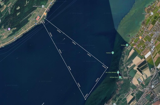 Um die Funktionen unter realen Bedingungen zu testen, sollte am 2. Juli 2024 das Boot einen Dreieckskurs von Wingreis nach Mörigen und wieder zurück ohne externe Intervention und Fernsteuerung selbstständig abfahren. Rechtzeitig auf den Termin konnte eine entsprechende Bewilligung unter Einhaltung gewisser Vorgaben beim kantonalen Schifffahrtsamt für die Seeüberquerung eingeholt werden.