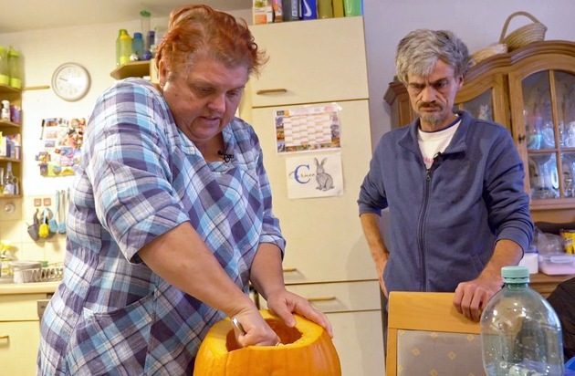 Die Benz-Baracken feiern Halloween! Carmen und Dieter höhlen Kürbisse aus. Bei Elvis und Katrin wird gebacken und Nachbar Florian und seine Kinder dekorieren den Eingangsbereich.