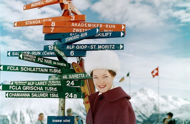 Schauspielerin Romy Schneider auf der Corviglia, Februar 1960. Foto: Milou Steiner