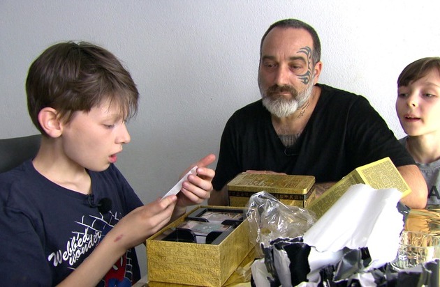 Lukas (12, li.) freut sich über seine Geburtstagsgeschenke, die es trotz Geldnot gibt. / Weiterer Text über ots und www.presseportal.de/nr/6605 / Die Verwendung dieses Bildes für redaktionelle Zwecke ist unter Beachtung aller mitgeteilten Nutzungsbedingungen zulässig und dann auch honorarfrei. Veröffentlichung ausschließlich mit Bildrechte-Hinweis.