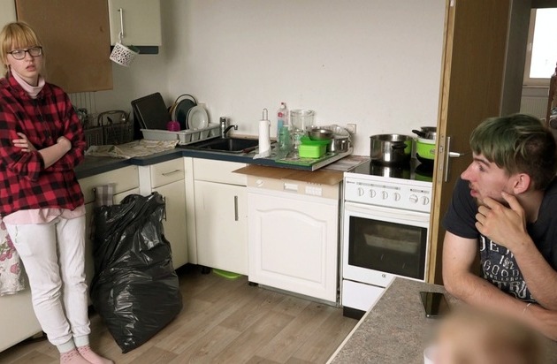 Seit vier Wochen wohnt die 20-jährige Jasmin mit ihrem zweijährigen Sohn Lennox im Mutter-Kind-Heim. Da auch Ehemann Maik regelmäßig zu Besuch kommt, bleibt das Aufräumen ihrer eigenen vier Wände leider auf der Strecke. Das will die junge Familie jetzt ändern. / Weiterer Text über ots und www.presseportal.de/nr/6605 / Die Verwendung dieses Bildes für redaktionelle Zwecke ist unter Beachtung aller mitgeteilten Nutzungsbedingungen zulässig und dann auch honorarfrei. Veröffentlichung ausschließlich mit Bildrechte-Hinweis.