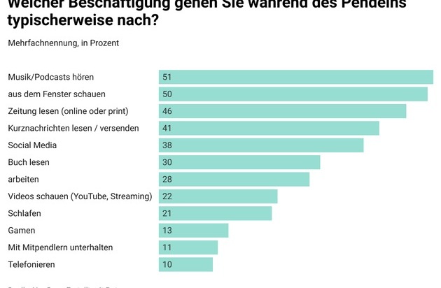 Welcher Beschäftigung gehen Sie während des Pendelns nach? Quelle: YouGov