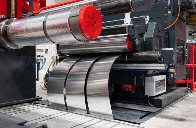Die Anlage teilt Bänder in schmalere Streifen, die in der Maschinen-, der Elektro-, der Bau- und der Automobilindustrie Anwendung finden. / Weiterer Text über ots und www.presseportal.ch/de/nr/100053189 / Die Verwendung dieses Bildes für redaktionelle Zwecke ist unter Beachtung aller mitgeteilten Nutzungsbedingungen zulässig und dann auch honorarfrei. Veröffentlichung ausschließlich mit Bildrechte-Hinweis.
