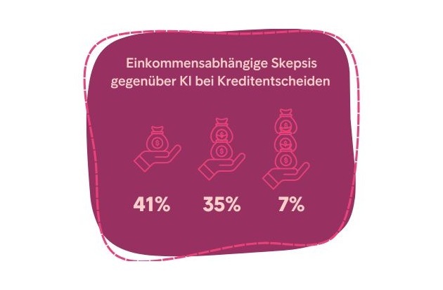 - Datensicherheit und Vertrauen: 56 % der Generation X und 50 % der Männer haben Bedenken hinsichtlich der Sicherheit ihrer Daten in Verbindung mit KI. Dennoch akzeptieren mehr als zwei Drittel KI-Entscheidungen in Finanzfragen, vor allem, weil Maschinen persönliche Umstände nicht bewerten.