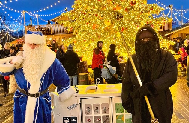 In Zürich begeistern in der Adventszeit mehrere Weihnachtsmärkte, ein Märlitram und zauberhafte Weihnachtsbeleuchtungen. Dabei gehen leere Glühweinbecher gerne vergessen und Pappteller landen am Boden statt im Abfallkübel. Deshalb sorgte am 4. Dezember ein blauer Samichlaus für mehr Achtsamkeit im Umgang mit Abfall. Er belohnte alle Passantinnen und Passanten, die ihren Abfall korrekt entsorgen, mit Mandarinen, Nüssen und Schokolade. Unter der blauen Kutte steckte ein Botschafter des Schweizer Kompetenzzentrums gegen Littering IGSU. «Zürich bezaubert zur Weihnachtszeit Menschen aus aller Welt», freut sich IGSU-Teamleiter Cédric Québatte «Damit diese Idylle nicht durch herumliegenden Abfall zerstört wird, weisen wir die Einheimische und Touristen charmant und auf Augenhöhe darauf hin, dass auch Taschentücher und Essenspapier in den Kübel gehören.»
