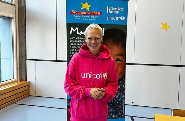 Zürich/Krattigen, 5. Dezember 2024 – Am Freitag fand eine besondere Pressekonferenz mit engagierten Kindern der Schule aus Krattigen (BE) statt. Sie stellten den eingeladenen Journalisten und weiteren Anwesenden ihre Spendenaktion für die UNICEF-Sternenwochen vor und erhielten dabei prominente Unterstützung von Sängerin und UNICEF-Botschafterin Stefanie Heinzmann.