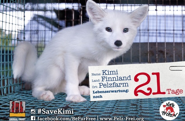 Kimis Fell wird von der Modeindustrie weiterverarbeitet werden. VIER PFOTEN ruft mit seiner neuen Kampagne zum Protest auf, wobei Kimi stellvertretend für die weltweit 100 Millionen Tiere steht, die für die Pelzmode jährlich getötet werden. Der Protest richtet sich insbesondere an das britische Modelabel Burberry, das Pelze aus finnischen Farmen bezieht und somit für die Tötung von Kimi verantwortlich sein wird. "Es liegt somit auch in der Hand von Burberry, Kimi und seine Artgenossen am Leben zu lassen. Der Ausstieg aus dem Pelzgeschäft wäre für das Unternehmen machbar und würde das Leid von Millionen von Tieren beenden", so Julie Stillhart.