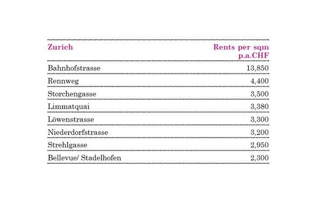 Location Group Research: Neue Spitzenmiete von 13'850 Franken an der Zürcher Bahnhofstrasse