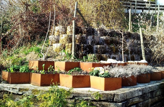 Sie haben eine Böschung und wollen diese als Gartenfläche nutzbar machen? Herkömmliche Böschungssteine aus Beton bieten nur wenig bepflanzbare Fläche. Da es auf dem Markt noch keine Gestaltungselemente gab, mit denen man auch schwer zugängliche Hänge nutz- und begehbar machen kann, wurden Bögart-Elemente entwickelt: Leicht, stabil, formschön und witterungsbeständig. Die wabenförmigen Leichtbauelemente aus Metall wiegen rund sieben Kilogramm. Sie können ohne maschinelle Hilfe und ohne Fundament in die Böschung eingebaut werden. Ein Element bietet genügend Platz, um ein Obstbäumchen hinein zu pflanzen. Mehrere zusammengebaute Elemente eignen sich für Steingärten, als Rosenbeet, als Kräutergarten und für viele weitere gartengestalterische Ideen.