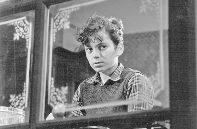 Jürg Grau alias Mäni im Film Oberstadtgass von Kurt Früh (1956) / ©Stadtarchiv Zürich, Fotograf Edi Baur / Auschliesslich zur redaktionellen Nutzung im Zusammenhang mit der Publikation "Schattierungen von Grau" und zeitlich begrenzt bis 31. Mai 2013. / Weiterer Text ueber ots und auf https://www.presseportal.ch. Die Verwendung dieses Bildes ist fuer redaktionelle Zwecke honorarfrei. Veroeffentlichung unter Quellenangabe: "OTS.Bild / ©Stadtarchiv Zürich"
