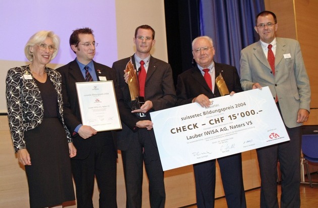Die Firma Lauber IWISA AG in Naters erhält den ersten suissetec-Bildungspreis. Damit will die Gebäudetechnikbranche Firmen honorieren, die in der Aus- und Weiterbildung ihren Mitarbeitenden Herausragendes bieten. Der Preis ist mit Fr. 15'000.- dotiert und von der Firma CTA AG Klima, Kälte und Wärme in Münsingen gestiftet. Die erste Preisübergabe fand anlässlich der suissetec-Präsidentenkonferenz am 24. September in Winterthur statt.
