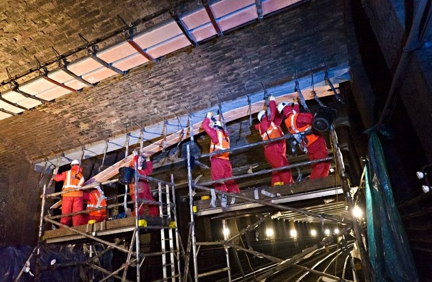 An der Embankment Station verlaufen zwei Tunnelröhren in verschiedenen Tiefen. Es ist der Knotenpunkt von vier U-Bahn-Linien und rund 30'000 Pendler pro Tag. Die gusseisernen Deckenträger der oberen Tunnelröhre tragen den ganze Überbau und sind rund 140 Jahre alt. Eine Erneuerung des Tunnelabschnitts war dringend nötig - ein Tunnelneubau war aufgrund der täglichen Frequenzen keine Option. Darum entschied man sich für eine Verstärkung der Gusseisenträger mit Hilfe von Sika.