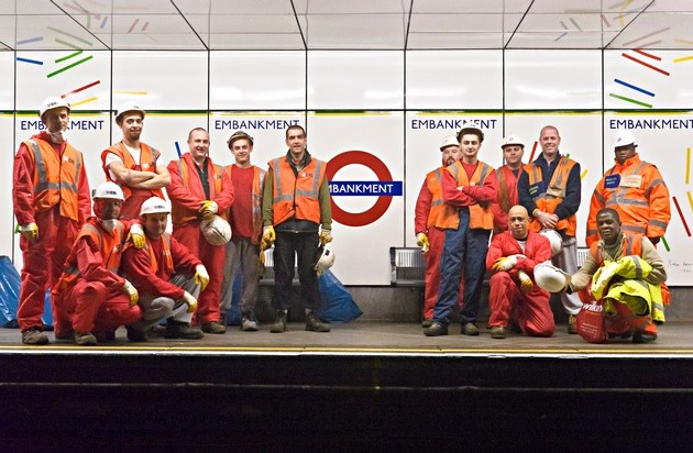 Zufriedene Gesichter auf der Embankment Station der Londener Tube. Weiterer Text ueber ots und auf https://www.presseportal.ch. Die Verwendung dieses Bildes ist fuer redaktionelle Zwecke honorarfrei. Veroeffentlichung unter Quellenangabe: "OTS.Bild/Sika AG".