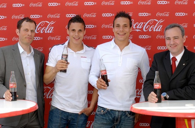 Coca-Cola freut sich, heute die Zusammenarbeit mit Johan, David und Philipp offiziell anzukündigen. Für Coca-Cola ist die Unterstützung dieser drei jungen Nationalspieler eine konsequente Erweiterung des Engagements im Jugendfussball. Johan, David und Philipp sind junge Fussball-Stars, die mit ihrer sympathischen und unbekümmerten Art die Herzen der Fans erreichen. Kaum demNachwuchsfussball entschlüpft, beissen sie sich in ihren Vereinsteams in Deutschland und England erfolgreich durch. "Gerade ihre Jugendlichkeit, ihre Dynamik und ihre Ausstrahlung sind Eigenschaften, die sie wie keine anderen repräsentieren und deshalb in hervorragender Weise zu Coca-Cola und der jungen Zielgruppe passen" so Flavio Calligaris-Maibach, Marketingleiter bei Coca-Cola AG. Und man darf gespannt sein, denn nicht nur in der aktuellen Kampagne "Football on the Coke Side of Life" werden die drei Fussballer künftig öfters zu sehen sein.