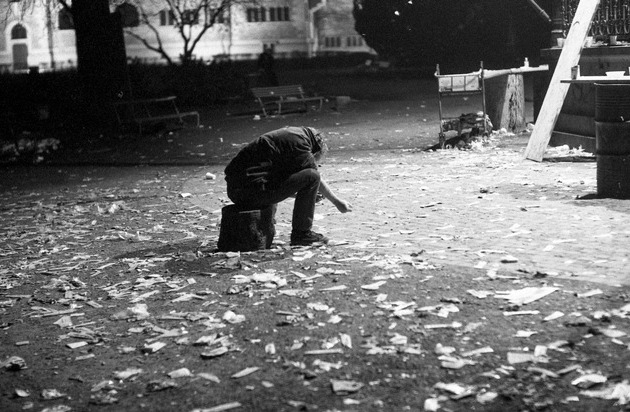 (c) Schwerizerisches Sozialarchiv. Gertrud Vogler: Nachts auf dem Platzspitz Aufnahme vom 29.1.1989.