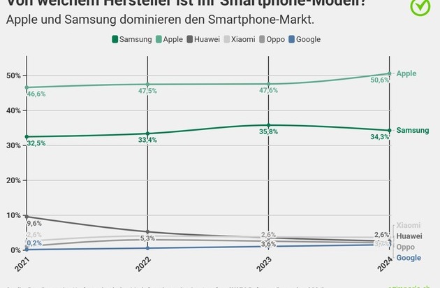 Medienmitteilung: Apple konnte 2024 seinen Marktanteil in der Schweiz signifikant steigern