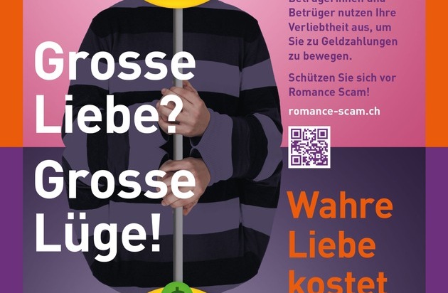 Plakat Romance Scam / Weiterer Text über ots und www.presseportal.ch/de/nr/100011391 / Die Verwendung dieses Bildes für redaktionelle Zwecke ist unter Beachtung aller mitgeteilten Nutzungsbedingungen zulässig und dann auch honorarfrei. Veröffentlichung ausschließlich mit Bildrechte-Hinweis.