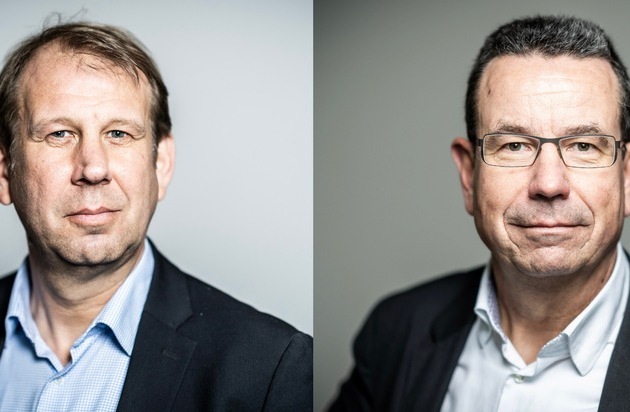 Michael Fischer (li.) bleibt dpa-Kanzlerkorrespondent - Jörg Blank zum Chefkorrespondent Außen- und Sicherheitspolitik berufen / Weiterer Text über ots und www.presseportal.de/nr/8218 / Die Verwendung dieses Bildes für redaktionelle Zwecke ist unter Beachtung aller mitgeteilten Nutzungsbedingungen zulässig und dann auch honorarfrei. Veröffentlichung ausschließlich mit Bildrechte-Hinweis.