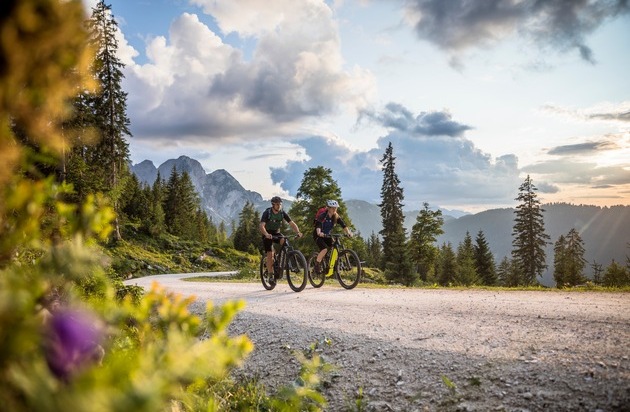 Mountainbiken am Gosaukamm / Foto: Ferienregion Dachstein Salzkammergut / WOM GmbH / Andreas Meyer / Weiterer Text über ots und www.presseportal.de/nr/177283 / Die Verwendung dieses Bildes für redaktionelle Zwecke ist unter Beachtung aller mitgeteilten Nutzungsbedingungen zulässig und dann auch honorarfrei. Veröffentlichung ausschließlich mit Bildrechte-Hinweis.