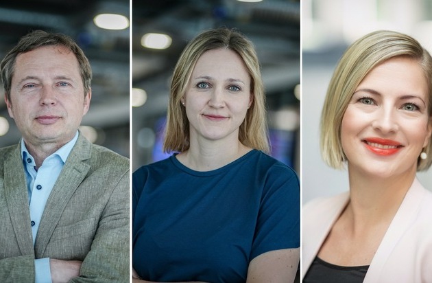 Verschmelzung von dpa-infografik und dpa-infocom. Im Bild: Jirka Albig und Teresa Dapp, Geschäftsführer und Geschäftsführerin der dpa-infocom und Ira Kugel, bisherige Geschäftsführerin der dpa-infografik und neue Geschäftsführerin der Rufa Rundfunk-Agenturdienste GmbH (v.li.n.re.) / Weiterer Text über ots und www.presseportal.de/nr/8218 / Die Verwendung dieses Bildes für redaktionelle Zwecke ist unter Beachtung aller mitgeteilten Nutzungsbedingungen zulässig und dann auch honorarfrei. Veröffentlichung ausschließlich mit Bildrechte-Hinweis.