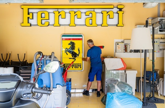 Ausstattung der Garage mit Ferrrari-Leuchtreklamen