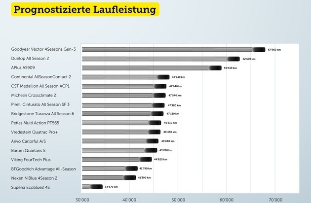Prognostizierte Laufleistung / Weiterer Text über ots und www.presseportal.ch/de/nr/100000091 / Die Verwendung dieses Bildes für redaktionelle Zwecke ist unter Beachtung aller mitgeteilten Nutzungsbedingungen zulässig und dann auch honorarfrei. Veröffentlichung ausschließlich mit Bildrechte-Hinweis.