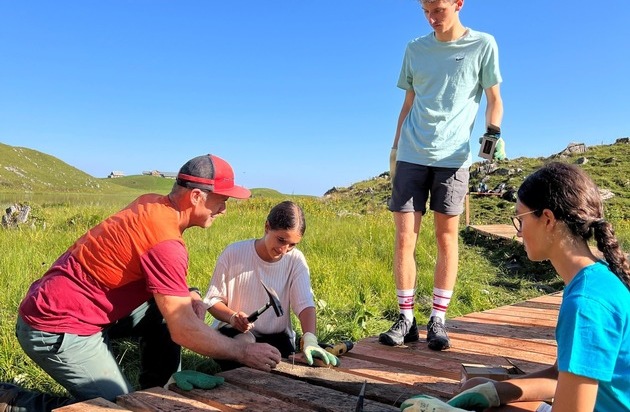 Die bereits veröffentlichten Insta-Storys zeigen die Lernenden beim Wandern – und dann beim «Chrampfen». Unter der Leitung von Hans Rohrer, Leiter Wanderwege Sachseln, erneuern sie Holzstege rund um den Seefeldsee. Mit dem Einsatz der Lernenden ist er sehr zufrieden: «Mich beeindruckt insbesondere der Wille der jungen Leute, mit uns zusammenzuarbeiten. Sie sind motiviert und engagiert – alle wollen ihren Teil beitragen.» Auf die Frage, ob es noch Potenzial gibt, meint er mit einem Lächeln: «Ja, beim Nageln. Da trifft nicht jeder Schlag auf den Kopf.»