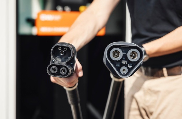 Grössenvergleich: Links der CCS-Typ-2-Stecker, rechts der deutlich grössere MCS-Ladestecker für die Megawatt-Ladung von E-LKW. / © Designwerk Technologies AG