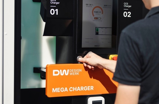 Per Knopfdruck startet der Ladevorgang am Mega Charger. Anschliessend lädt das Fahrzeug mit mehr als einem Megawatt. / © Designwerk Technologies AG