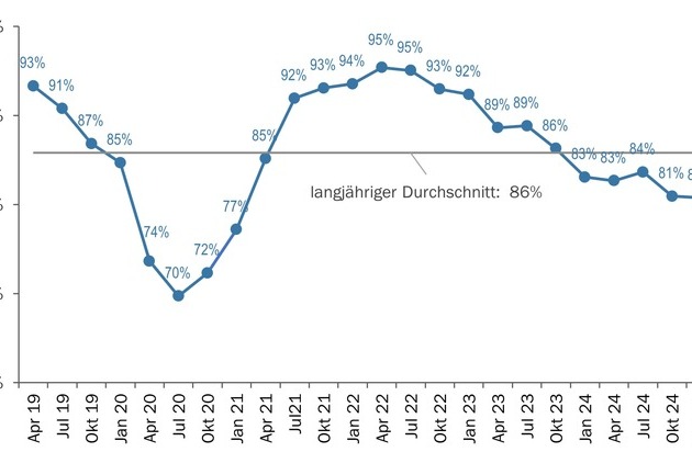 Die Erwartungen für das vierte Quartal sind gedämpft: Die Mehrheit rechnet nicht mit einer schnellen Erholung von Umsatz, Auftragslage oder Margen. Die Kapazitätsauslastung bleibt trotz leichter Verbesserungen unter dem langfristigen Durchschnitt.