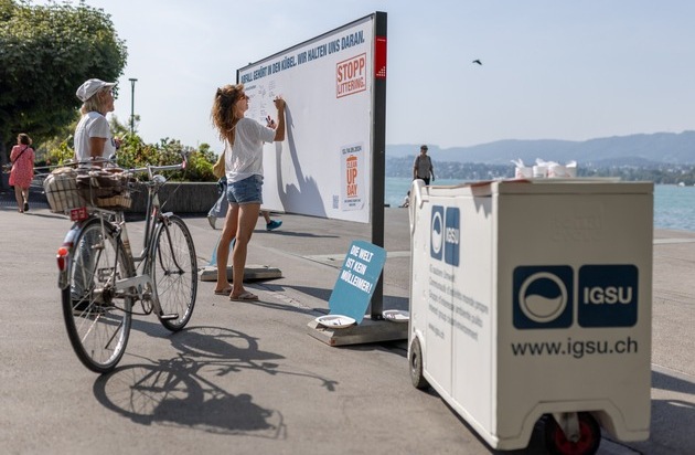 Neben den Statements von bekannten Schweizer Persönlichkeiten und ehemaligen Clean-Up-Day-Patrons wie Moderatorin Christa Rigozzi, Snowboarder Jonas Boesiger oder der ehemaligen Fussball-Nationalspielerin Lara Dickenmann, haben heute auch zahlreiche Zürcherinnen und Zürcher Unterschriften und Kommentare auf dem weissen IGSU-Plakat hinterlassen. Beim Zürcher Bellevue wurden sie von den IGSU-Botschafter-Teams dazu aufgefordert, sich darauf gegen Littering zu bekennen. Unterstützt wurden die IGSU-Botschafter-Teams dabei von Nationalrätin Bettina Balmer, Kantonsrat Alexander Jäger, Gemeinderat Anthony Goldstein, Gemeinderatskandidatin Alana Gerdes und Gemeinderat und FDP-Stadt-Zürich-Präsident Përparim Avdili. «Bekannte Gesichter wie jene von Stadtpräsidentinnen oder Gemeinderäten helfen uns natürlich dabei, Aufmerksamkeit zu erlangen», weiss IGSU-Teamleiter Cédric Québatte. «Sie unterstützen uns in mehreren Städten dabei, für die Littering-Problematik zu sensibilisieren.» Bekenner-Aktionen wie diese werden von der IGSU seit 2013 in Städten wie Basel, Bern, Luzern und Lugano durchgeführt. Unterstützt wird die Aktion auch seitens Wirtschaft von JTI (Japan Tobacco International).