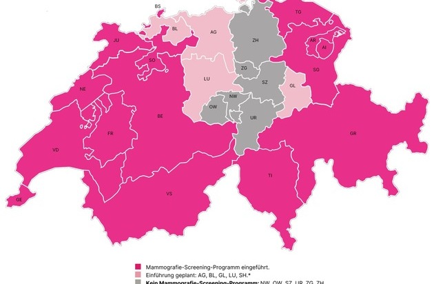 Illustration: Karte Kantone mit und ohne Mammografie-Screening-Programm