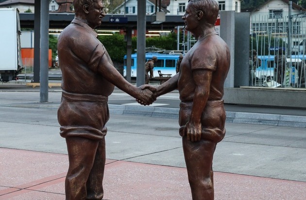 Am Bahnhof Arth-Goldau begegnet man nicht nur Reisenden, sondern neu auch einem historischen Schaffner der Rigi-Bahn, zwei Schwingern oder sogar einem Bären. Die 15 lebensgrossen Skulpturen im Bahnhofsareal bilden das Herzstück des Projekts «Nächster Halt», mit dem die Gemeinde Arth gleich zwei Jubiläen feiert: 150 Jahre Arth-Rigi-Bahn und 100 Jahre Natur- und Tierpark Goldau.