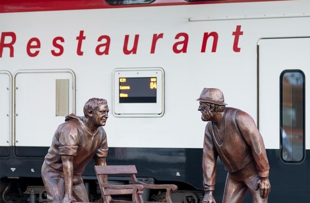 Offiziell lanciert wurde das Jubiläums-Projekt «Nächster Halt» der drei Parteien am 1. September. Seither sorgen die Skulpturen am Bahnhof Arth-Goldau für Aufsehen. Zu sehen – und zu fotografieren – sind unter anderem ein Bartgeier, ein historischer Rigi-Bahn-Schaffner, zwei Schwinger, eine Wanderin oder zwei Sänftenträger. Sie alle nehmen als Repräsentanten der drei Parteien den Bahnhof Arth-Goldau ein und interagieren mit der bestehenden Infrastruktur oder mit Passanten. So badet der Fischotter im Brunnen, der Fuchs durchwühlt den Abfalleimer und die Sänftenträger warten auf «Kundschaft».