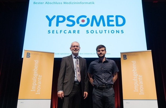 Bester Abschluss des Bachelors Medizininformatik: Nicolas Joël Gujer (rechts) mit Prof. Michael Lehmann (links), Fachbereichsleiter Medizininformatik. Preis mit freundlicher Unterstützung der Ypsomed AG zur Verfügung gestellt.