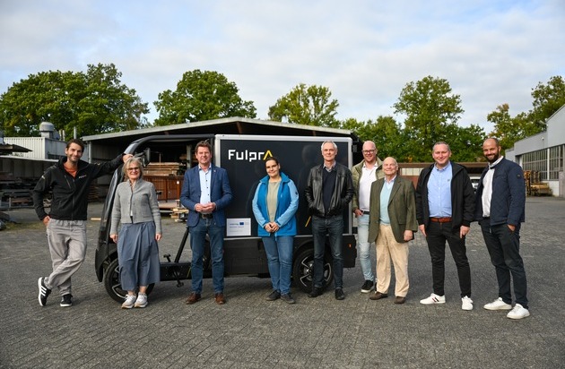 Das Projektteam mit einem E-Cargobike zur umweltfreundlichen Paketzustellung. / Weiterer Text über ots und www.presseportal.de/nr/177283 / Die Verwendung dieses Bildes für redaktionelle Zwecke ist unter Beachtung aller mitgeteilten Nutzungsbedingungen zulässig und dann auch honorarfrei. Veröffentlichung ausschließlich mit Bildrechte-Hinweis.