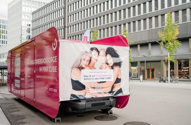 Zürich, 4. Oktober 2025 - Alle sechs Stunden stirbt in der Schweiz eine Frau an Brustkrebs. Früherkennung kann Leben retten. Um darüber aufzuklären, macht der PINK CUBE – ein leuchtend pinkes ärztliches Beratungszimmer, heute in Zürich auf dem Europaplatz Halt und informiert über Brustkrebsfrüherkennung, bietet persönliche Beratung, kostenlose Tastuntersuchungen und vieles mehr. Medizinischer Partner ist das Brust-Zentrum Zürich.